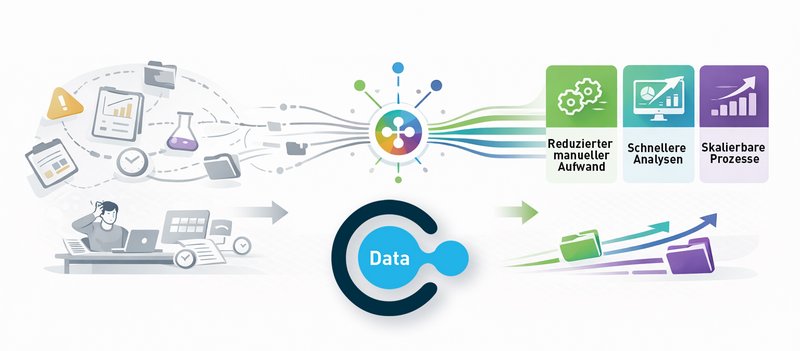In der Praxis werden Daten von Prüfständen, Sensoren und Bildgebungssystemen zwar häufig erfasst, jedoch in unterschiedlichen Anwendungen oder lokalen Verzeichnissen gespeichert. Für eine aussagekräftige Analyse müssen diese Daten immer wieder – oft manuell – zusammengeführt werden.
